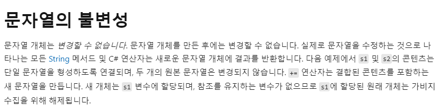 따라서 string은 문자열 조작 작업이 많다면 string보단 StringBuilder를 사용하는 것이 올바른 방법으로 보인다.