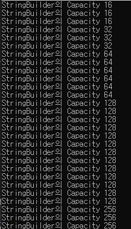 Console.WriteLine($"StringBuilder의 Capacity {sb.Capacity}");