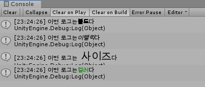 Debug.Log("이번 로그는<size=20>사이즈</size>다");