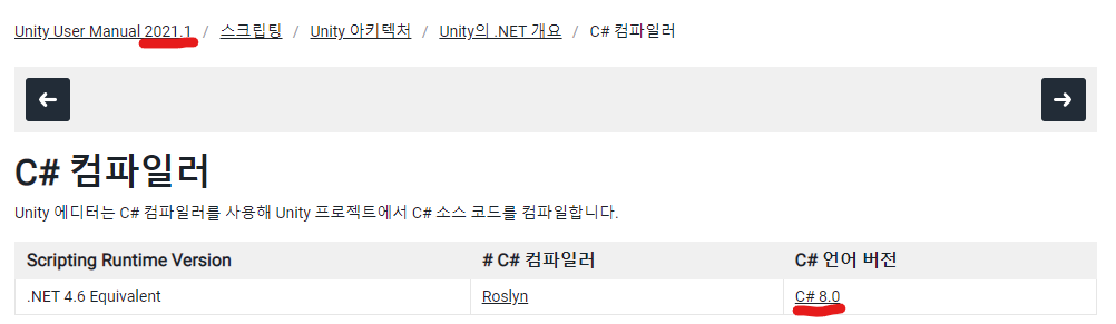 Unity C#에 대한 언어 버전이 C# 8.0으로 업데이트 되었다.
